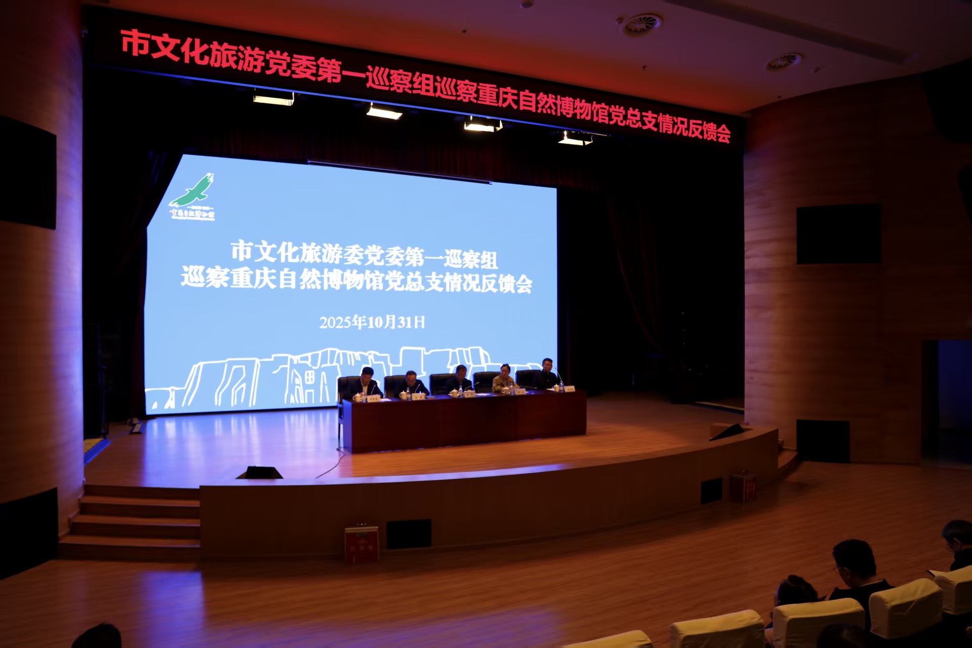 ——市文化旅游委党委第一巡察组在重庆自然博物馆召开巡察情况反馈会(2025年10月31日) 2025年10月31日,重庆市文化旅游委党委第一巡察组巡察重庆自然博物馆党总支情况反馈会议在二楼多功能厅召开。市文化旅游委一级巡视员幸军,机关党委专职副书记、机关党办(巡察办)主任李灿,委党委第一巡察组组长、文物督察处处长汤涛,博物馆与社会文物处一级调研员杨柱逊等出席会议,重庆自然博物馆党总支领导班子成员、全体干部职工参加会议。会上,汤涛代表第一巡察组反馈巡察意见,深刻指出自然馆党总支在落实新时代博物馆高质量发展要求有差距,践行“一个博物馆就是一所大学校”的重要指示精神,发挥博物馆公益职能不够有力;履行全面从严治党责任有差距,内控制度执行不够严格;加强基层党组织建设存在差距,干部队伍建设缺乏统筹规划;推动巡察、审计发现问题整改不够深入,在解决突出问题深化标本兼治上存在差距等四个方面存在的短板与不足,并从提高政治站位,统筹谋划单位发展;坚持党建引领,纵深推进全面从严治党;立足发展实际,加强干部队伍建设;坚持问题导向,扎实推进巡察整改等四个维度有针对性地提出了整改建议,为后续严实推进整改落实指明了方向、提供了遵循。幸军巡视员在讲话中强调,巡视整改是检验被巡视党组织领导干部“四个意识”的试金石,也是履行管党治党责任推动高质量发展的重要抓手。他要求,重庆自然博物馆要提高政治站位,切实增强抓好整改的思想自觉行动自觉。深刻认识抓好巡察整改是体现坚定拥护“两个确立”、坚决做到“两个维护”的重要举措,是深入推进全面从严治党的必然要求,是推动文化旅游高质量发展的有力保障;要强化责任担当,全面推动整改措施落实落细。切实扛起巡察整改政治责任,落细落实巡察整改工作举措,强化巡察整改成果运用,为促进单位改革发展、推进文化旅游强市建设作出积极贡献;要抓实整改监督,确保巡察整改常态长效。推动建立常态化、长效化整改工作机制,确保巡察反馈意见件件有着落、事事有回音、条条有整改,推动巡察整改落到实处、取得实效。重庆自然博物馆党总支书记、馆长高碧春同志作表态发言。他表示,巡察组反馈的意见客观中肯、切中要害,深刻指出了我们存在的问题与不足,自然馆党总支照单全收、诚恳接受、坚决整改,并将以高度的政治自觉抓好巡察整改、以扎实的方法举措确保整改成效、以完善的长效机制深化成果运用,切实把整改成效体现到推动博物馆高质量发展的具体实践中,落实到优化展览质量、深化科学研究、规范收藏管理、提升科教水平的有力举措中,真正做到问题查摆清晰、根源剖析透彻、措施精准有力、成效经得起检验。会议最后,全体参会人员还对市文化旅游委党委第一巡察组作风纪律情况进行了民主测评。重庆自然博物馆将以此次巡察整改为新起点,以踏石留印、抓铁有痕的韧劲,不折不扣、从严从实抓好整改工作,以巡察整改的新成效、单位全面发展的新面貌,向委党委和广大干部职工交上一份满意的答卷!