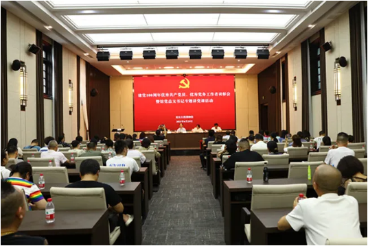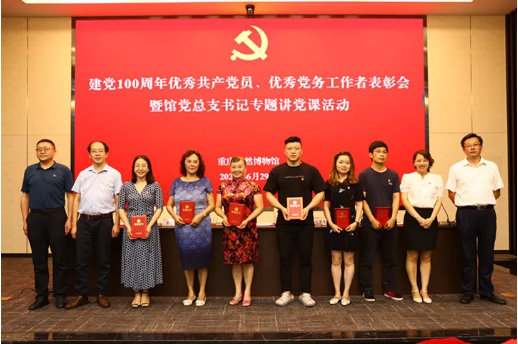 6月29日下午,重庆自然博物馆在中国西部科学院旧址陈列馆作孚堂开展建党100周年优秀共产党员、优秀党务工作者表彰会暨馆党总支书记专题讲党课活动,全馆职工及退休职工代表共计76人参会。